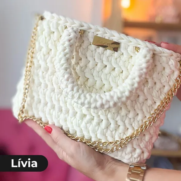 Entre no Clube do Crochê e siga um caminho claro, passo a passo, para sair do básico e começar a criar bolsas que você realmente tenha orgulho - mesmo começando do zero.